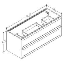 - Skåp med 2 lådor och tvättställ i keramik: Det högkvalitativa tvättstället i keramik erbjuder hållbarhet, funktion och en klassisk estetik.