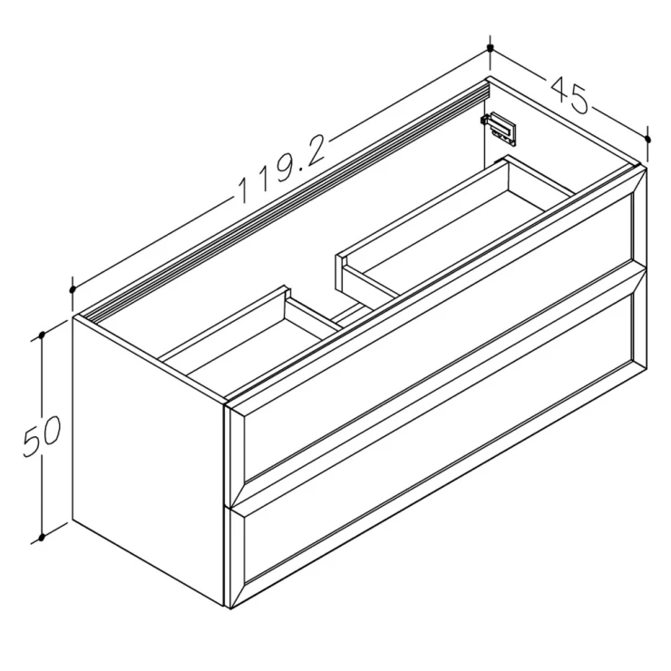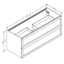 - Skåp med 2 lådor och tvättställ i keramik: Det högkvalitativa tvättstället i keramik erbjuder hållbarhet, funktion och en klassisk estetik.
