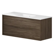 Tvättställsskåp Ekskär Valnöt Matt 120 cm med Handfat Vit Blank
