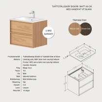 Tvättställsskåp Ekskär Valnöt Matt 60 cm med Handfat Vit Blank