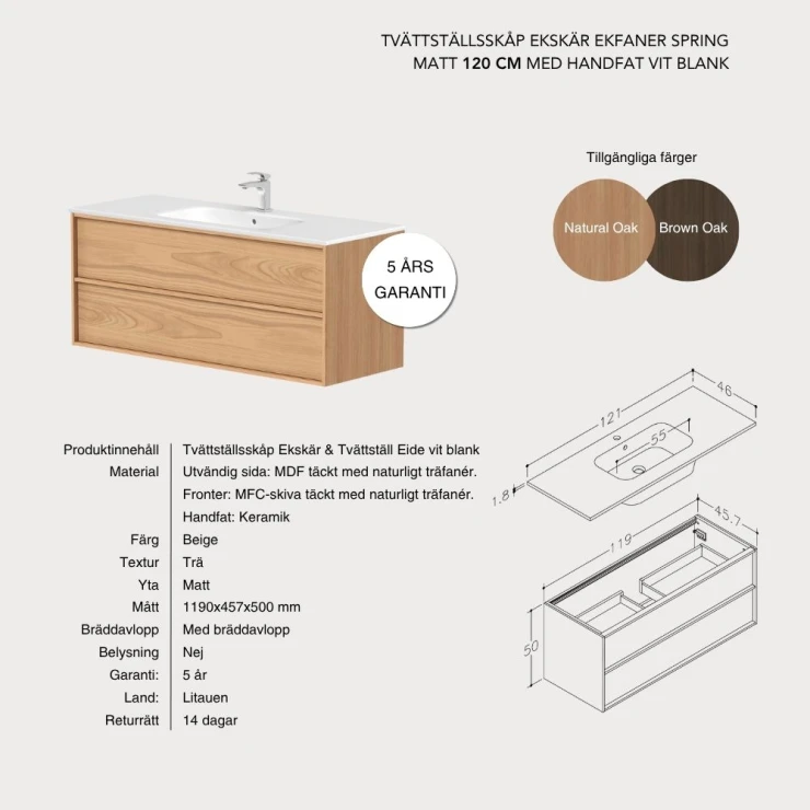 Med Ekskär får du inte bara ett elegant uttryck utan även trygghet genom fem års garanti som standard. Det gör kollektionen till ett pålitligt val för dig som vill investera i långsiktigt hållbara badrumsmöbler. Ekskär kombinerar skandinavisk enkelhet med praktisk funktion och naturliga materialval – en serie för dig som vill skapa ett badrum med både värme, estetik och hög kvalitet.