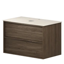 Tvättställsskåp Ekskär Valnöt 80 cm med Cosentino Bänkskiva Silestone Ljusbeige Polerad