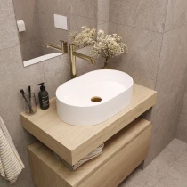 Skåp i Elmstone-kollektionen kombineras bäst med Bänkskiva från Elmstone samt tvättställ från Coloris-kollektionen eller Mira-kollektionen. Komplettera gärna med matchande speglar och badrumsaccessoarer för en enhetlig helhet.