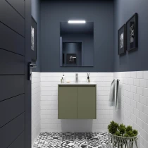 Tvättställsskåp Flint Skogsgrön Matt 60 cm med Handfat Vit Blank