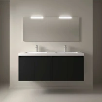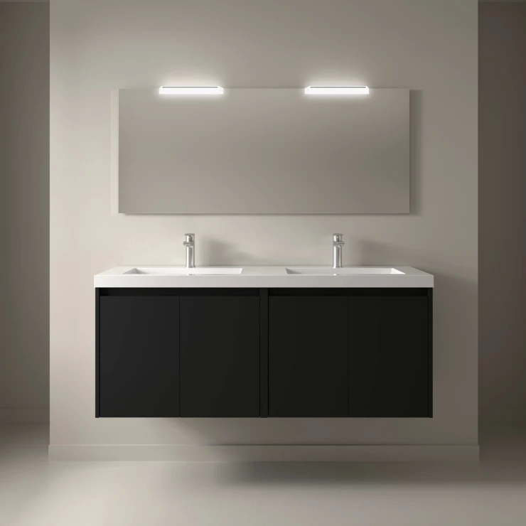 Tvättställsskåp Flint Svart Matt 140 cm med Dubbel Handfat Vit Blank
