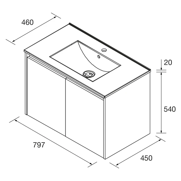 Tillgänglig i flera storlekar: 600, 700, 800, 1200 och 1400 mm – med varianter som 2 dörrar, 4 dörrar (dubbel) eller 2 lådor + 2 dörrar (1200/1400 mm).
