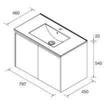 • Observera: Tvättställsblandare, bottenventil och vattenlås ingår ej.