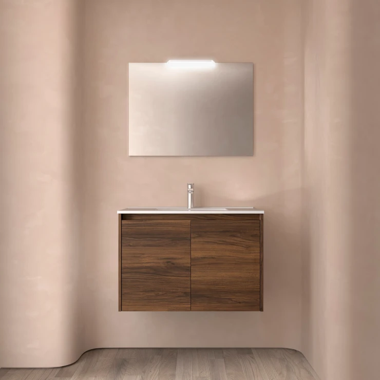 Tvättställsskåp Flint Valnöt Matt 80 cm med Handfat Vit Blank