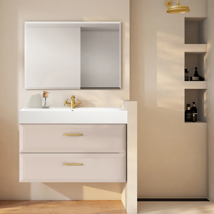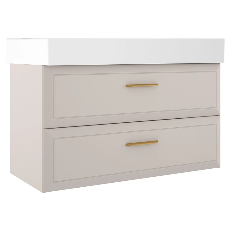 Tvättställsskåp Gold Tandem Beige Matt 100 cm med Butler Handfat Vit Blank
