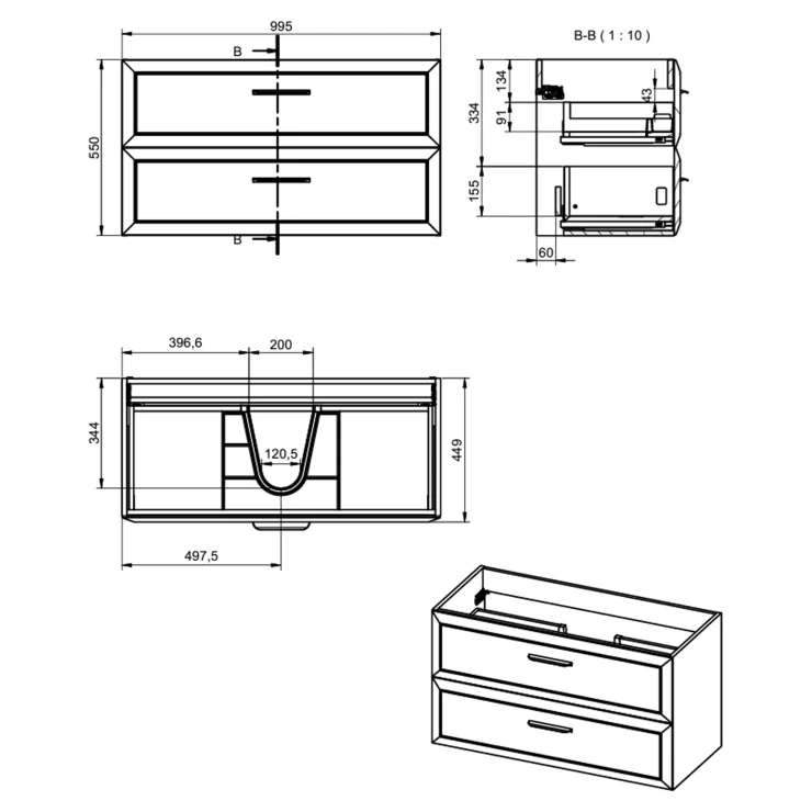 Mått: 995x449x550mm