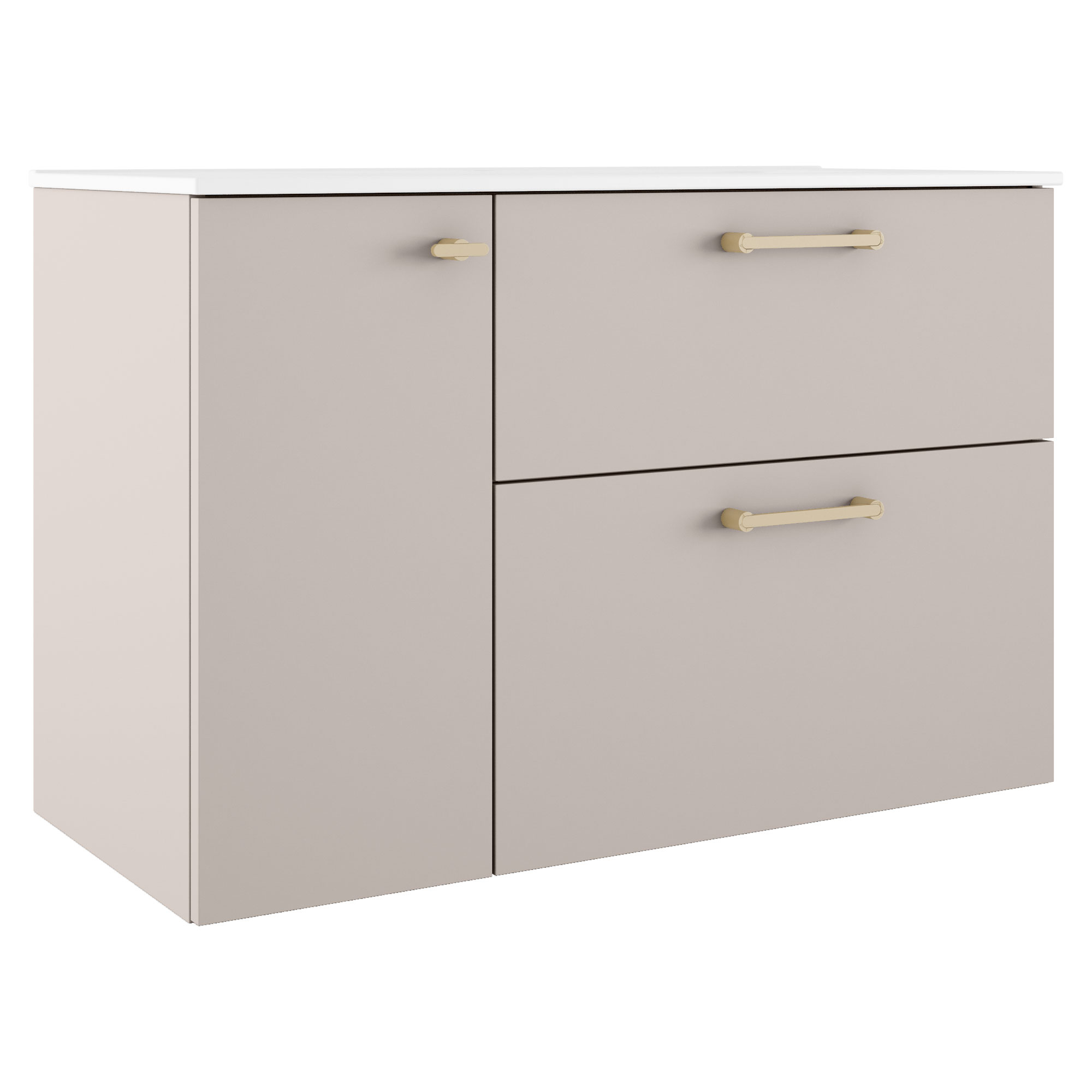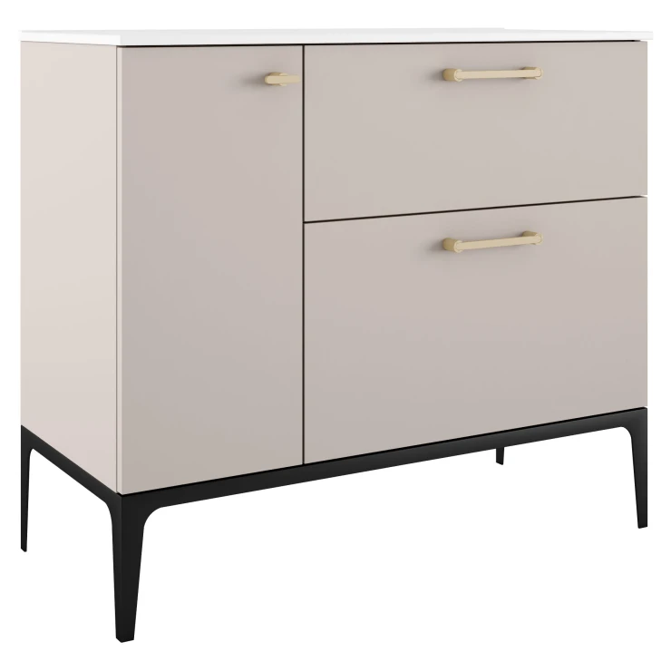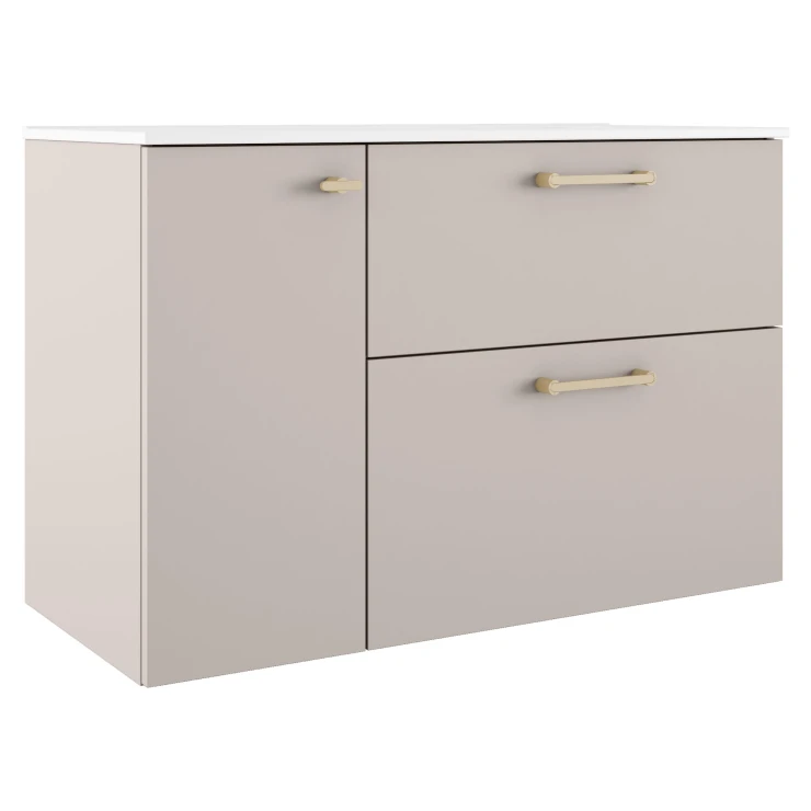 Tvättställsskåp Guld Ombra Beige 100 cm Höger med Handfat Vit & Ben