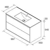 • - Tvättställsskåp med 2 lådor (dolda skenor, soft-close, höjdjusterbara)