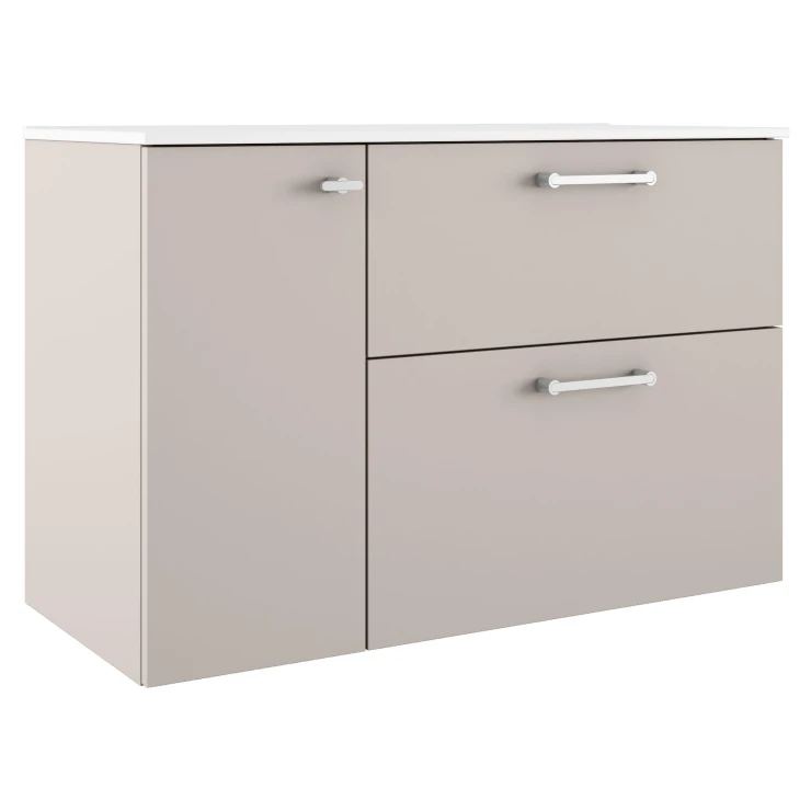 Tvättställsskåp Krom Ombra Beige 100 cm Höger med Handfat Vit & Ben