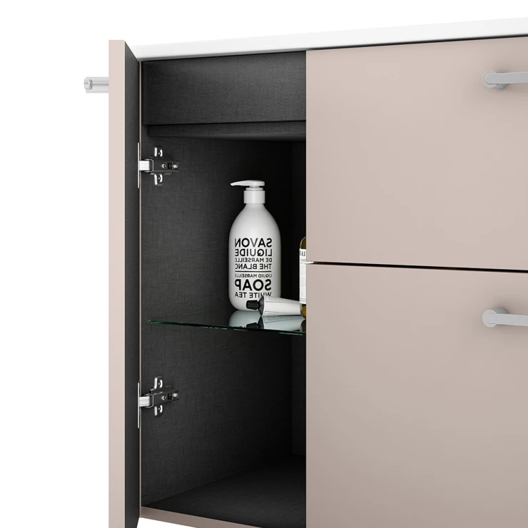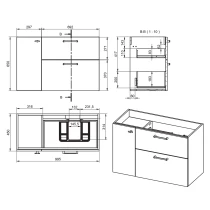 • - Skåp med lådor och integrerat tvättställ: Det keramiska handfatet är utformat för att smälta in i helheten och erbjuder både elegans och hållbarhet.