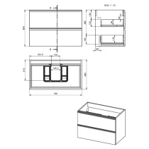 Material: Tvättställsskåp, Spånskiva, Handtag, Metallisk Profil med Epoxifinish; Bänkskiva, Hybridyta av Mineraler och Atervunnet Material