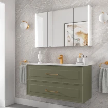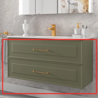 Tvättställsskåp Norrby Grön Matt 100 cm med Handfat Vit Blank & Handtagen Lineya Guld