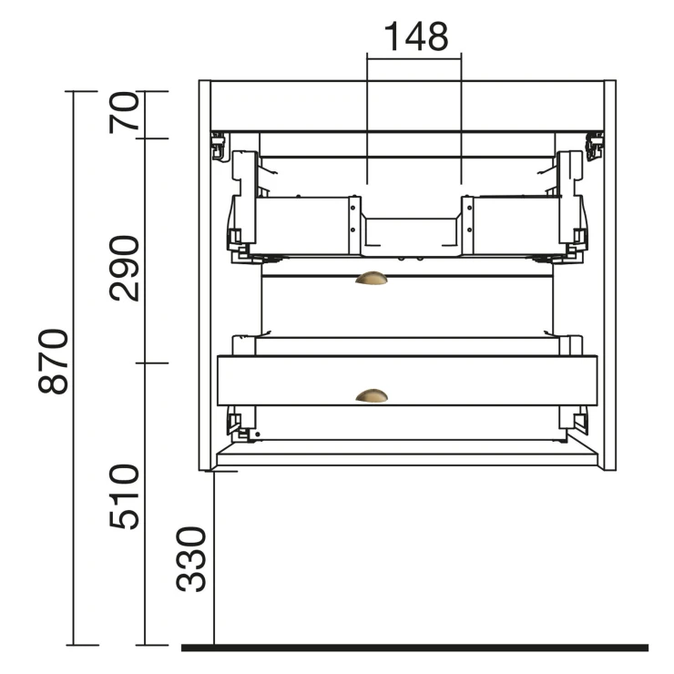 - Övre låda med säckbesparing för både integrerade och fristående handfat
