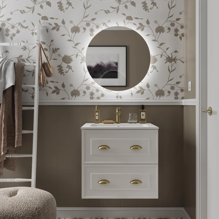 Tvättställsskåp Norrby Vit Matt 60 cm med Handfat Vit Matt & Handtagen Folkk Guld