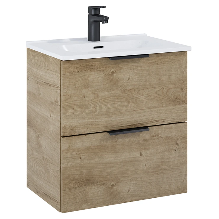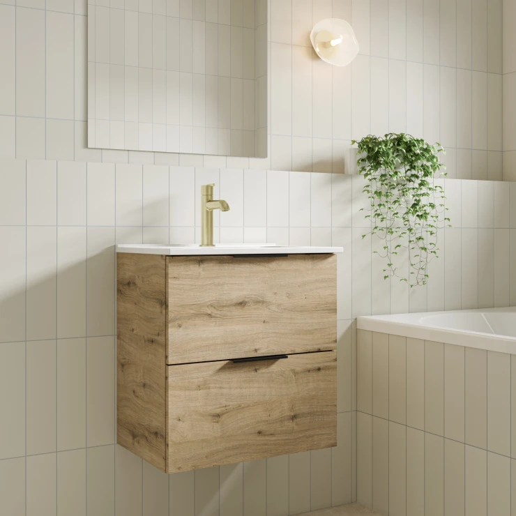 Tvättställsskåp Opus Ek Trä Matt 50 cm med Handfat Vit Blank