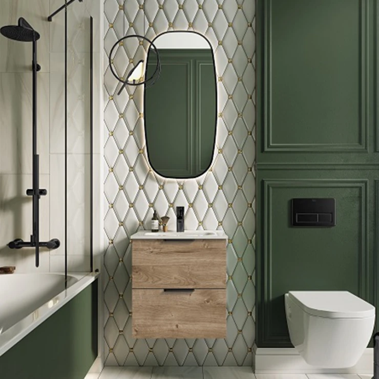 Tvättställsskåp Opus Ek Trä Matt 50x36 cm med Handfat Vit Blank