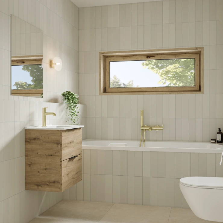• Detta badrumsset innehåller ett tvättställsskåp, 2 handtag (handtag i andra färger kan köpas separat i Bättre tillsammans) och ett handfat