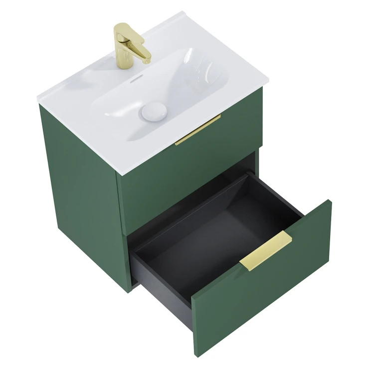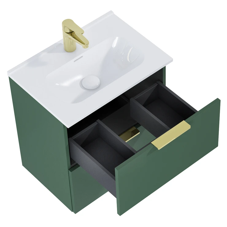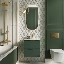 Tvättställsskåp Opus Grön Matt 50 cm med Handfat Vit Blank