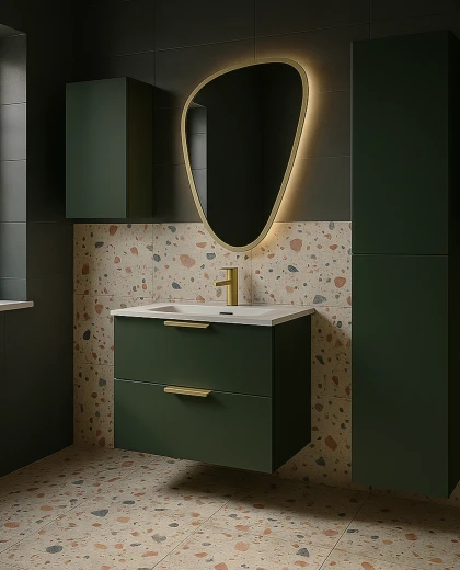 Tvättställsskåp Opus Grön Matt 50x36 cm med Handfat Vit Blank