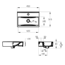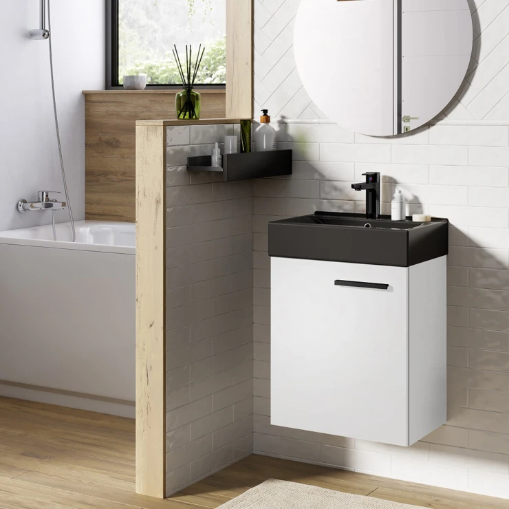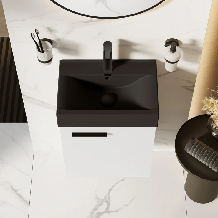Tvättställsskåp Petit Vit Matt 45 cm med Handfat Svart Matt