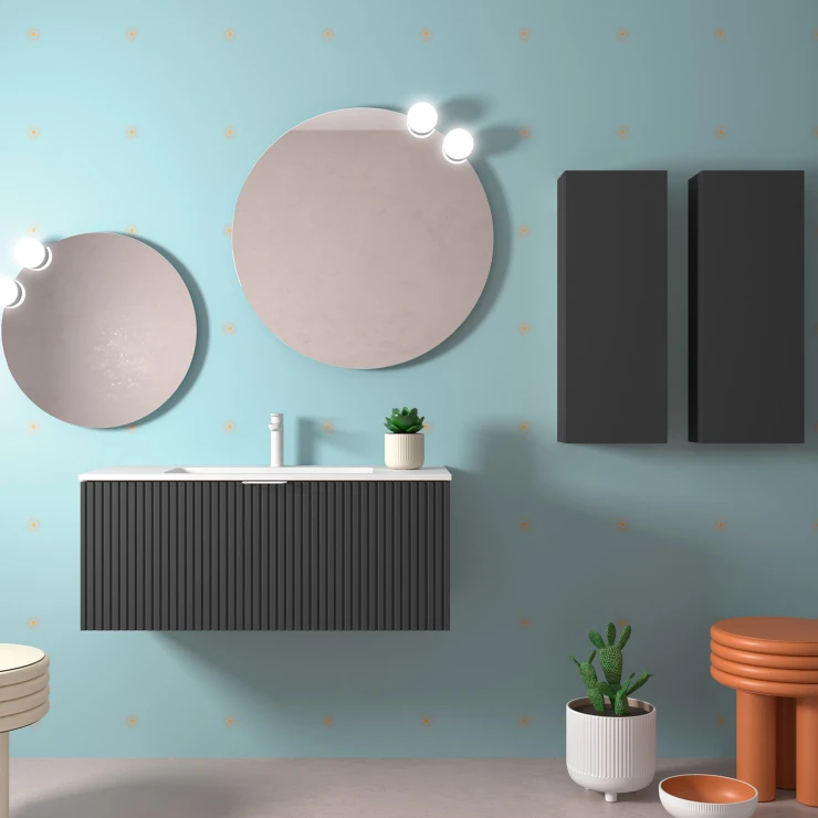 • Runa-serien är skapad för dig som vill ge ditt badrum personlighet och djup. Med sina vertikala spårfrästa fronter skapas en harmonisk rytm och känsla av rörelse som gör möbeln levande och unik.