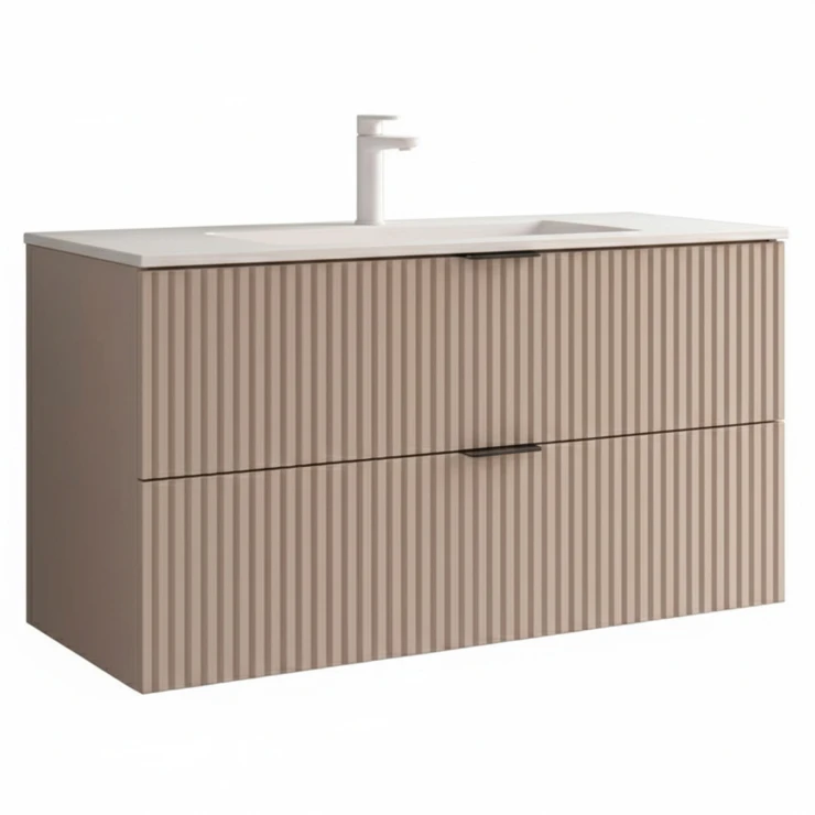 Tvättställsskåp Runa Beige Matt 100 cm med 2 Lådor & Handfat Vit Matt