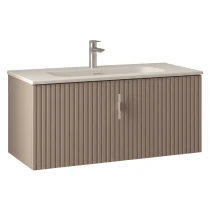 Tvättställsskåp Runa Beige Matt 90 cm med Handfat Vit Matt