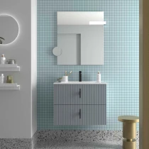 • Runa-serien är skapad för dig som vill ge ditt badrum personlighet och djup. Med sina vertikala spårfrästa fronter skapas en harmonisk rytm och känsla av rörelse som gör möbeln levande och unik.