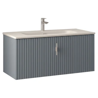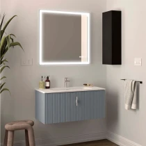 • Runa-serien är skapad för dig som vill ge ditt badrum personlighet och djup. Med sina vertikala spårfrästa fronter skapas en harmonisk rytm och känsla av rörelse som gör möbeln levande och unik.
