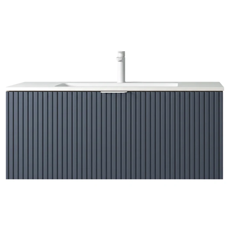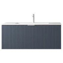 Tvättställsskåp Runa Mörkblå Matt 100 cm med Handfat Vit Matt