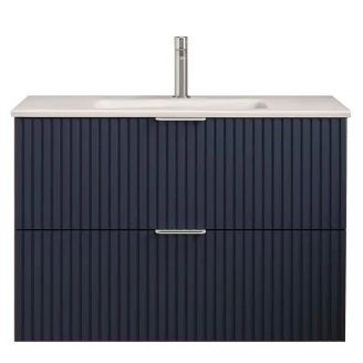 Tvättställsskåp Runa Mörkblå Matt 80 cm med 2 Lådor & Handfat Vit Matt