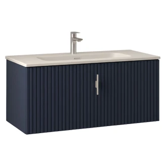 Tvättställsskåp Runa Mörkblå Matt 90 cm med Handfat Vit Matt