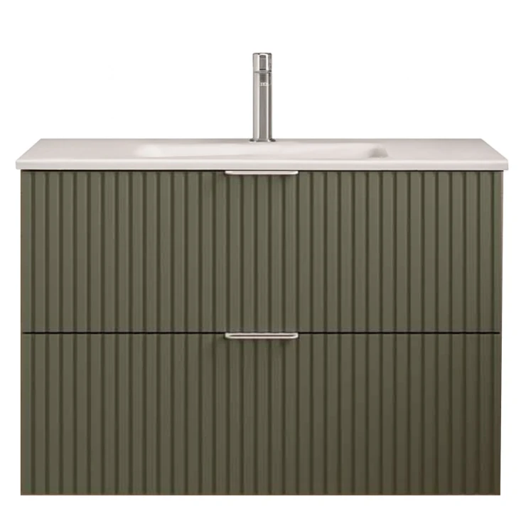 Tvättställsskåp Runa Skogsgrön Matt 80 cm med 2 Lådor & Handfat Vit Matt