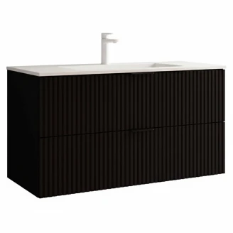 Tvättställsskåp Runa Svart Matt 100 cm med 2 Lådor & Handfat Vit Matt