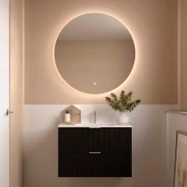 • Runa-serien är skapad för dig som vill ge ditt badrum personlighet och djup. Med sina vertikala spårfrästa fronter skapas en harmonisk rytm och känsla av rörelse som gör möbeln levande och unik.