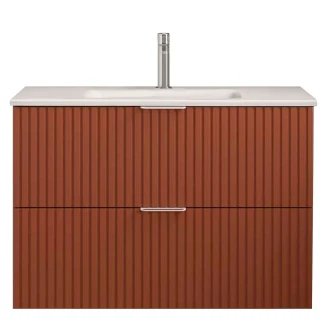 Tvättställsskåp Runa Terrakotta Matt 80 cm med 2 Lådor & Handfat Vit Matt
