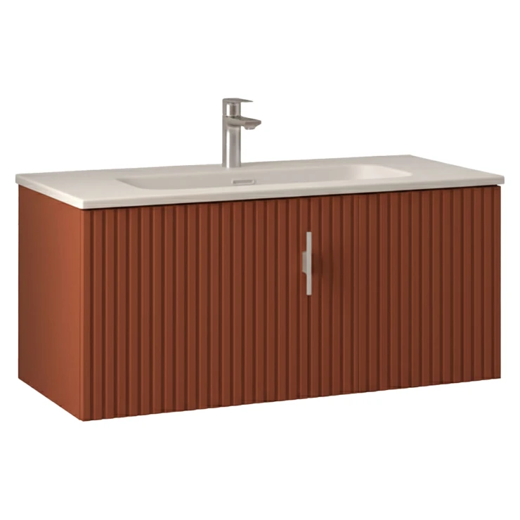 Tvättställsskåp Runa Terrakotta Matt 90 cm med Handfat Vit Matt