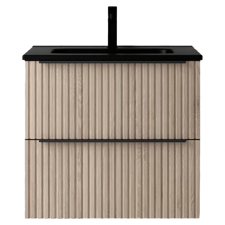 Tvättställsskåp Runa Trä Naturlig Matt 60 cm med 2 Lådor & Handfat Svart Matt