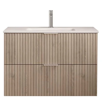 • Runa-serien är skapad för dig som vill ge ditt badrum personlighet och djup. Med sina vertikala spårfrästa fronter skapas en harmonisk rytm och känsla av rörelse som gör möbeln levande och unik.