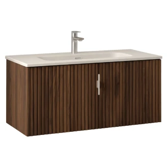 Tvättställsskåp Runa Valnöt Matt 90 cm med Handfat Vit Matt