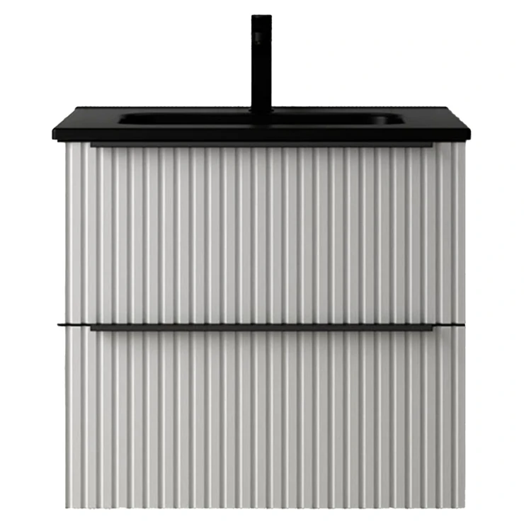 Tvättställsskåp Runa Vit Matt 60 cm med 2 Lådor & Handfat Svart Matt