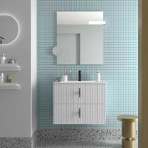 • Runa-serien är skapad för dig som vill ge ditt badrum personlighet och djup. Med sina vertikala spårfrästa fronter skapas en harmonisk rytm och känsla av rörelse som gör möbeln levande och unik.