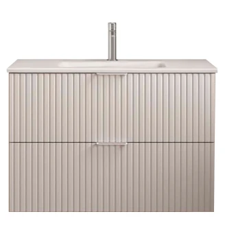 • Runa-serien är skapad för dig som vill ge ditt badrum personlighet och djup. Med sina vertikala spårfrästa fronter skapas en harmonisk rytm och känsla av rörelse som gör möbeln levande och unik.