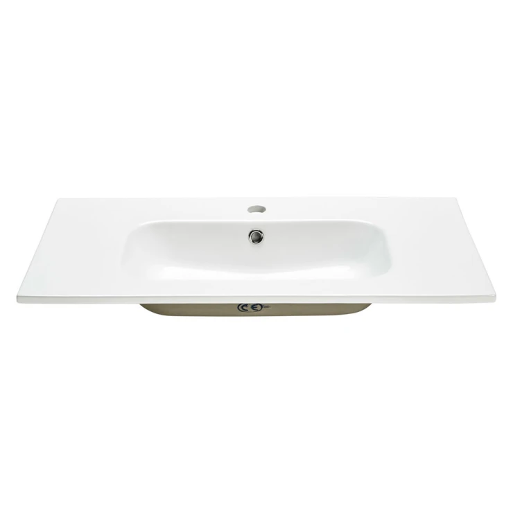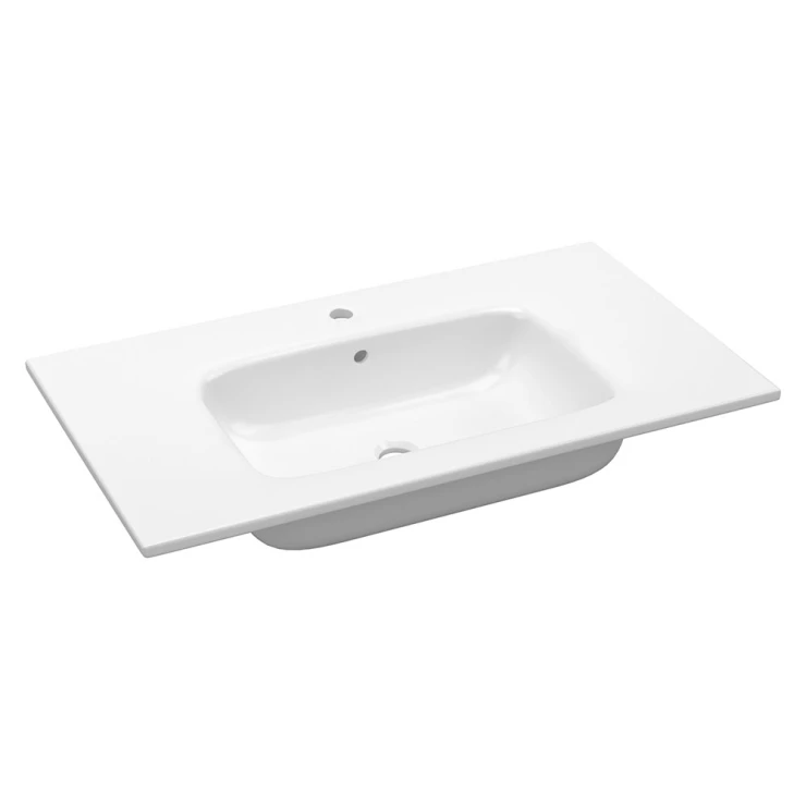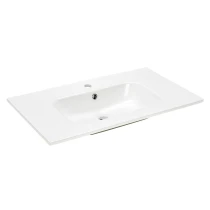 Design & Material - Skåp med 2 lådor och keramisk tvättställ: Tvättställens keramik består av lera och andra mineraler, brända vid 1250°C och täckta med en glansig vit beläggning.