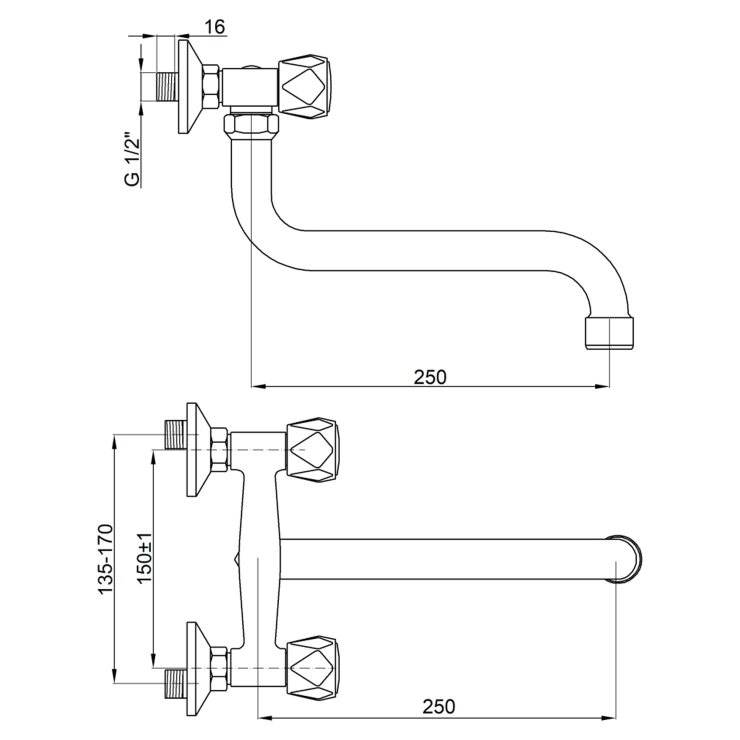 Väggmonterad Tvättställsblandare Wexford 25 cm Krom Blank