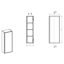 • - Vändbart väggskåp med 1 dörr och 4 hyllplan
